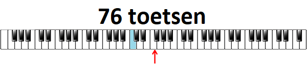 Het exacte midden van een pianoklavier met 76 toetsen is in de onderstaande figuur weer met een rode pijl aangegeven. De centrale C is de C die zich daar het dichtst bij bevindt (in blauw aangegeven).