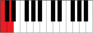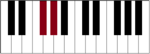 Vaak gaat het om een witte en zwarte toets die naast elkaar liggen, zoals bijvoorbeeld tussen C en Cis (of Des):